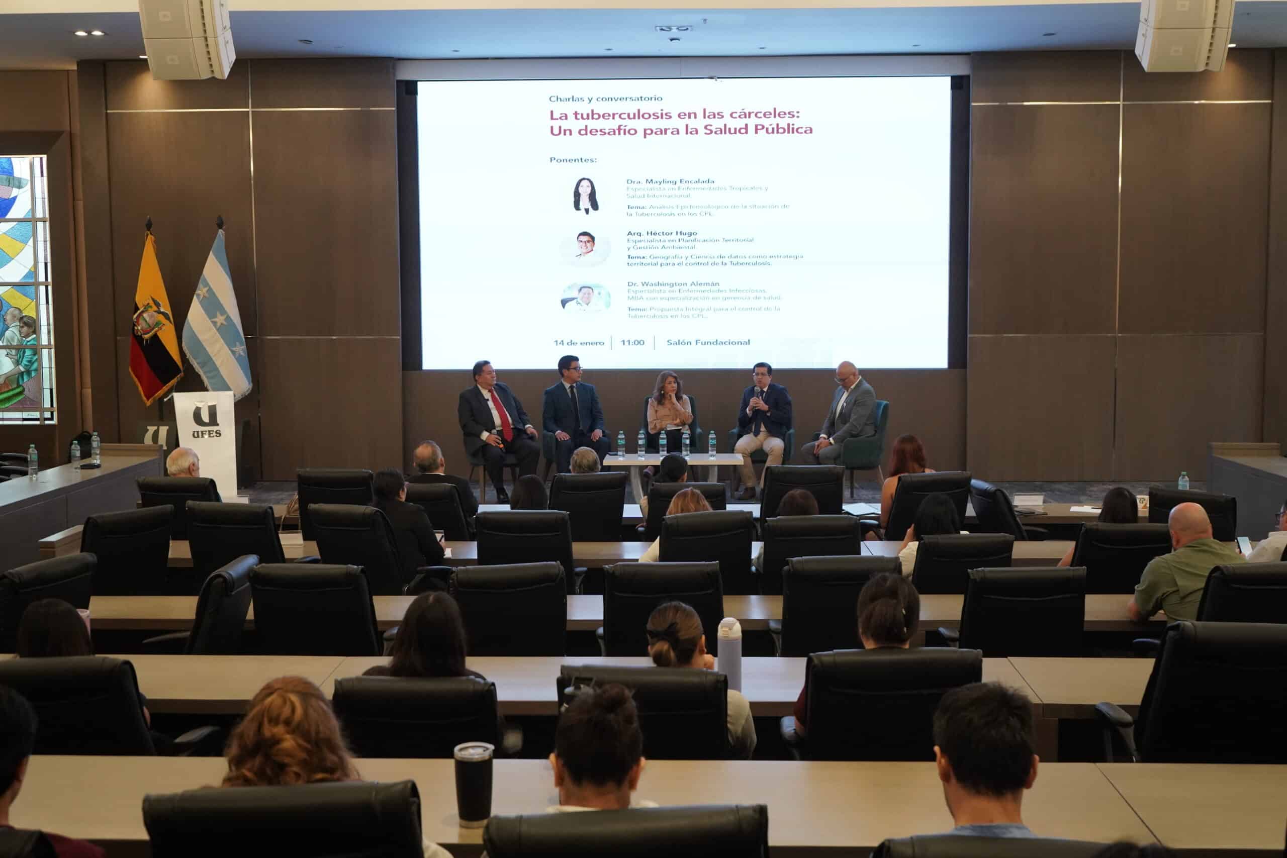 La Universidad Espíritu Santo (UEES) organizó la charla “Tuberculosis en las cárceles: un desafío para la salud pública”, en conjunto con representantes de la Universidad Católica de Guayaquil, la Universidad de Milagro, el área de Salud de la Alcaldía de Guayaquil, SNAI, Asamblea Nacional y expertos multidisciplinarios. El encuentro partió de una premisa clara: la tuberculosis en contextos penitenciarios no es solo un problema de las personas privadas de la libertad, sino una problemática comunitaria que se expande en silencio y afecta a toda la sociedad.