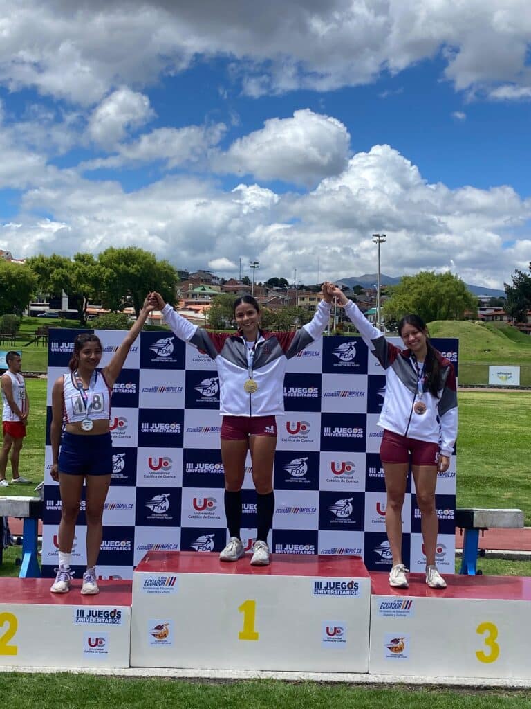 En atletismo, la UEES brilló con la medalla de oro obtenida por Danna Jorgge, estudiante de Medicina, en la prueba de salto largo, consolidando su dominio técnico y físico en la modalidad. A su desempeño se sumaron las destacadas participaciones de Diana Cadavid, de Psicología Clínica, quien alcanzó la medalla de plata en los 100 metros vallas y la medalla de bronce en salto largo, así como Isaac Vásquez, estudiante de Medicina, quien obtuvo la plata en los 110 metros vallas.